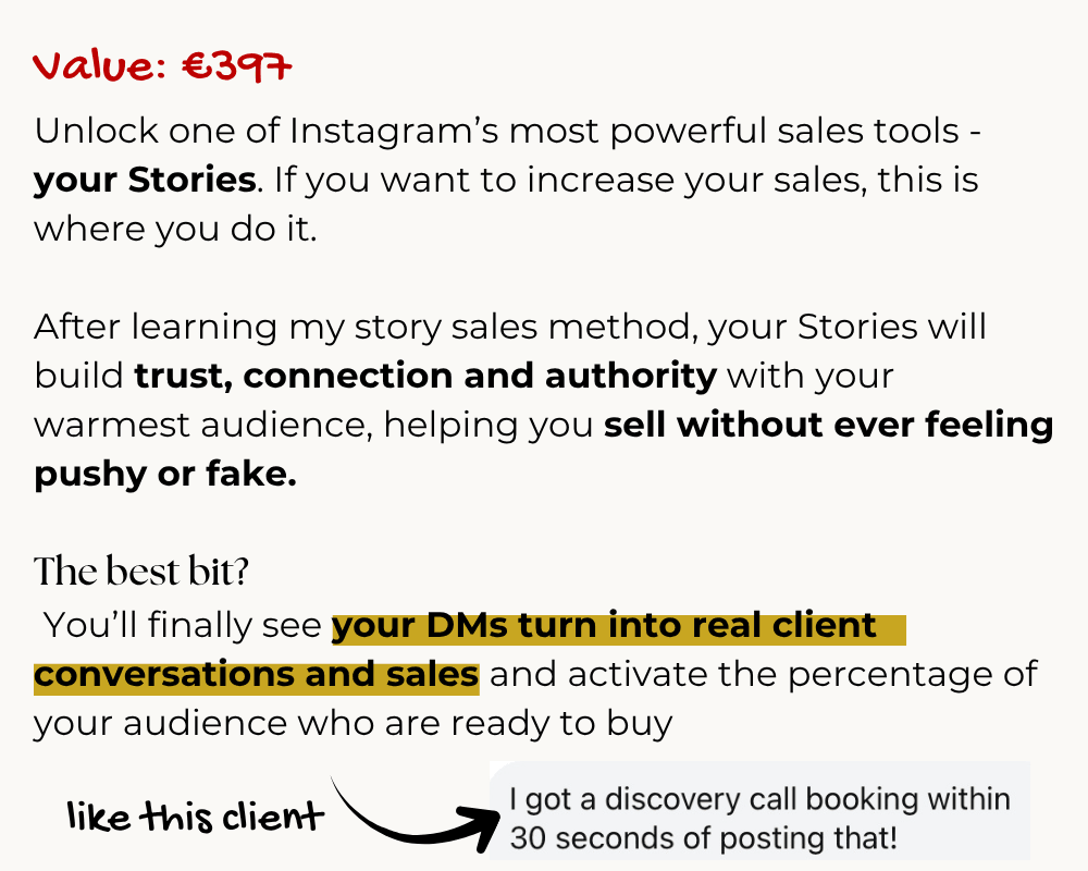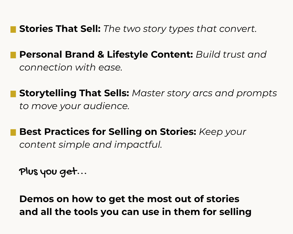 I'll teach you my exact story selling method, that's made me & my clients THOUSANDS in sales.