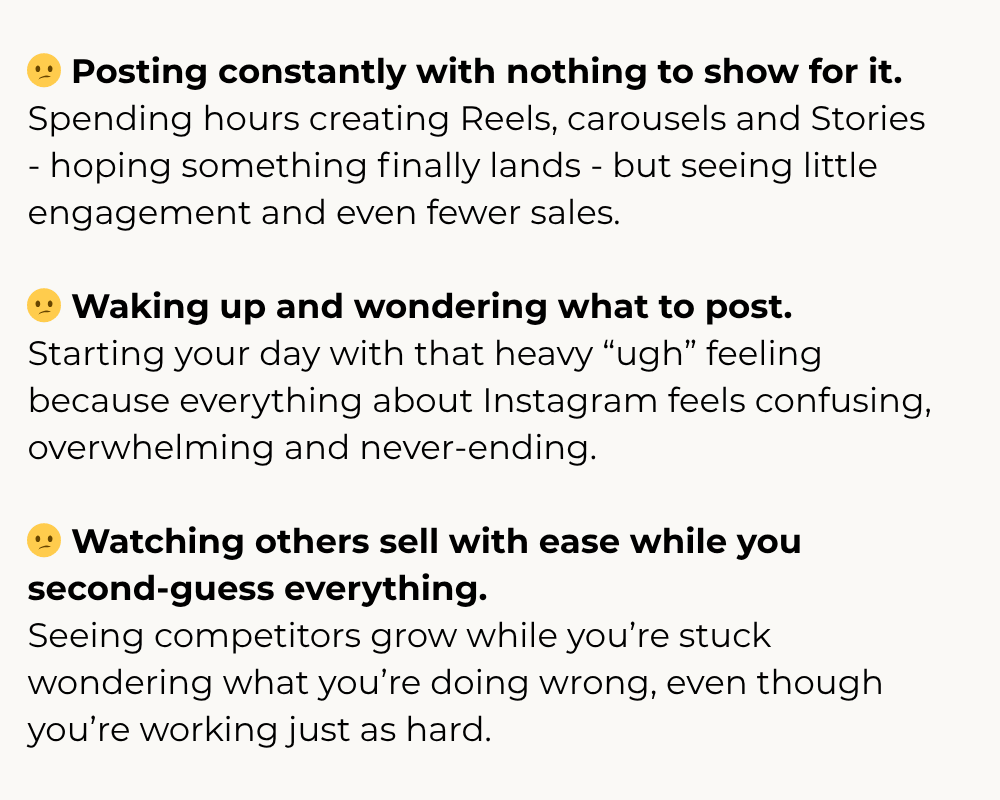😥 You might be stuck feeling like you’re doing all the things - posting Reels, writing captions, showing up on Stories - but seeing little to no return.