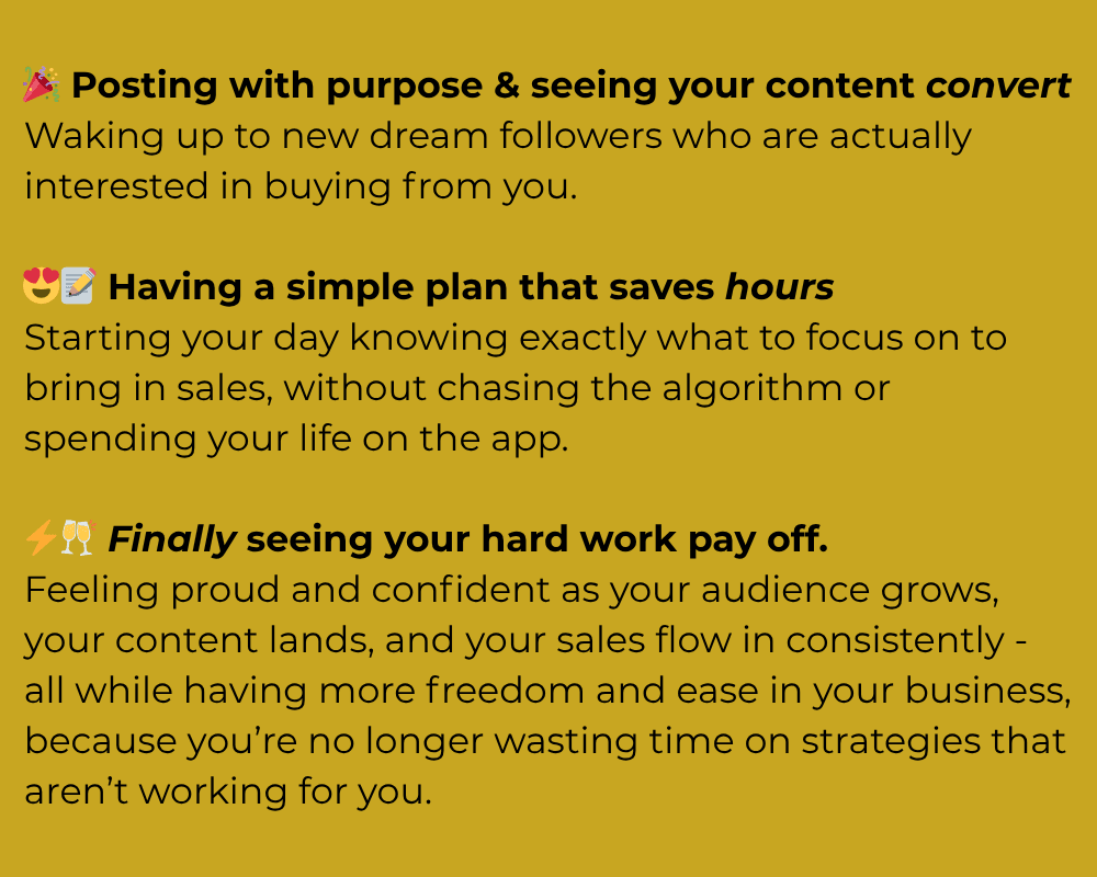 😍 A simple, strategic sales system frees you from chasing the algorithm and lets you focus on the work you actually love.