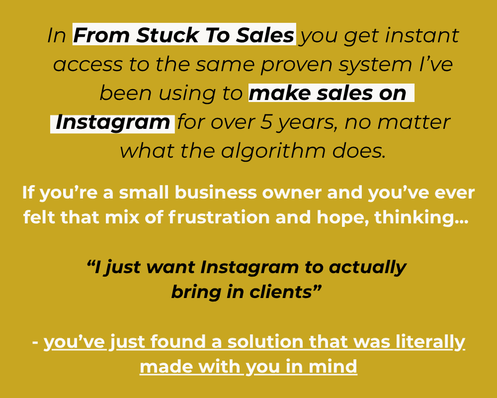 For more than 5 years now, 90% of my own sales have come through Instagram, and I've helped HUNDREDS of small business owners do the same.