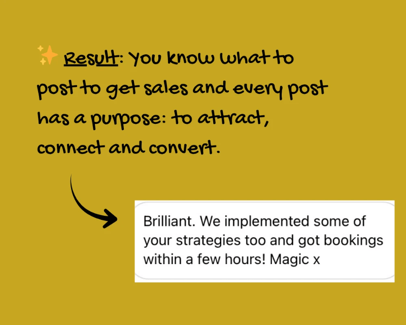 😥 And really wanting to grow your sales and book more clients through Instagram, but being unable to do that because you don’t have a clear strategy to turn attention into actual income.