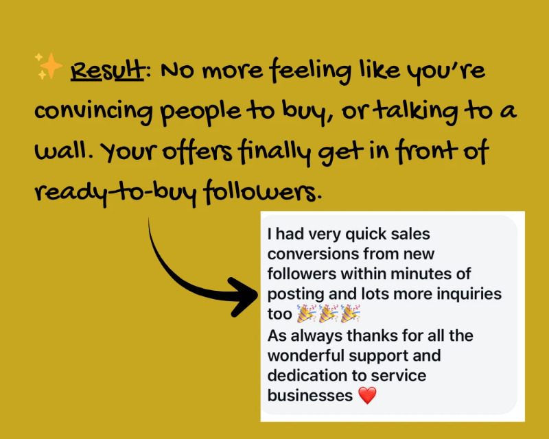 You'll finally see your DMs light up and turn into REAL client conversations and sales - because now you know how to activate the percentage of your audience who are ready to buy.