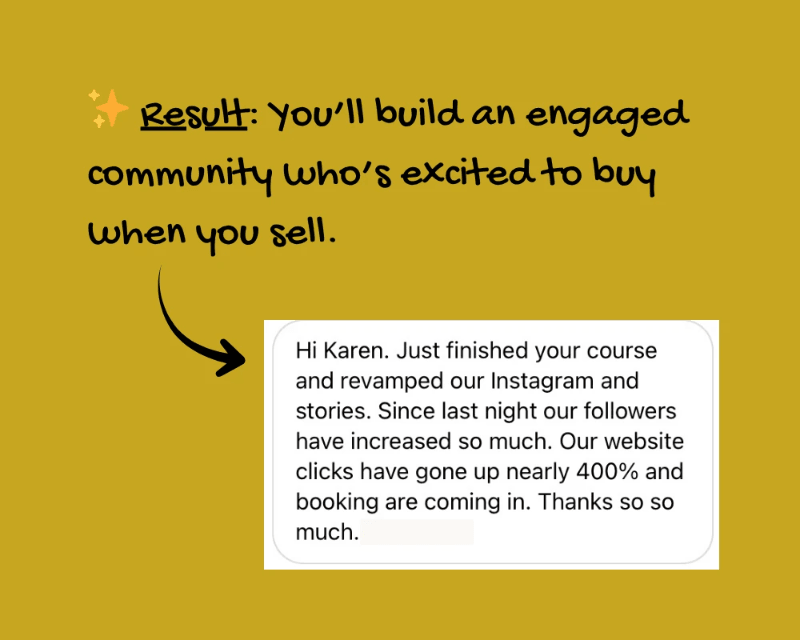 And since then? 90% of my own sales come through Instagram, and I've helped HUNDREDS of other solopreneurs do the same.