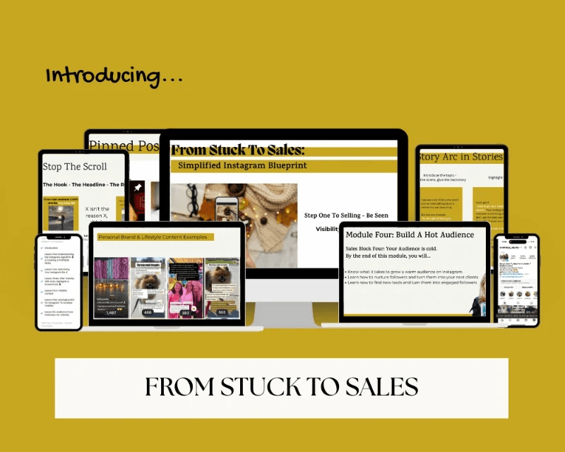 In From Stuck To Sales you get INSTANT access to the same proven system I've been using to make consistent sales on Instagram since 2015, no matter how the algorithm has changed.